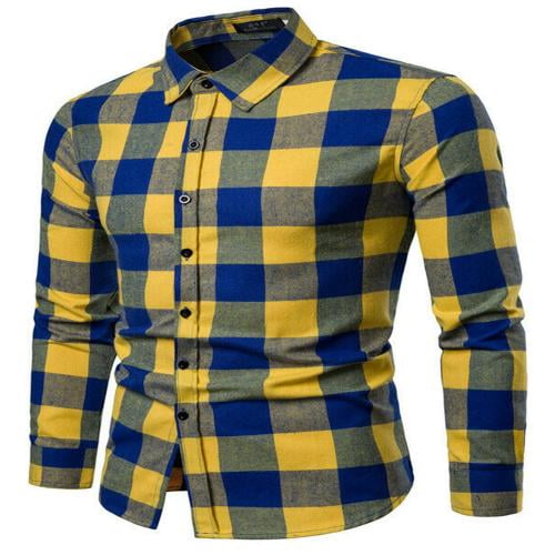 Jyyybf Men S Flannel Plaid Shirts Long Sleeve Casual Button Up Shirt Yellow L Walmart Com